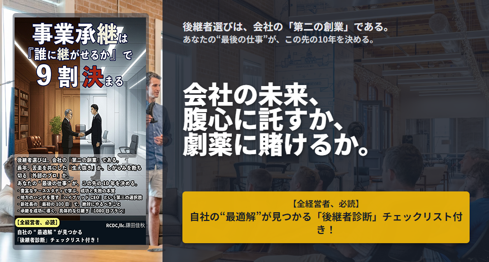 - 経営者は「建築家」であれ: 個人の才能に頼らず、誰がやっても成果が出る合理的プロセスと公平な評価制度を設計する。